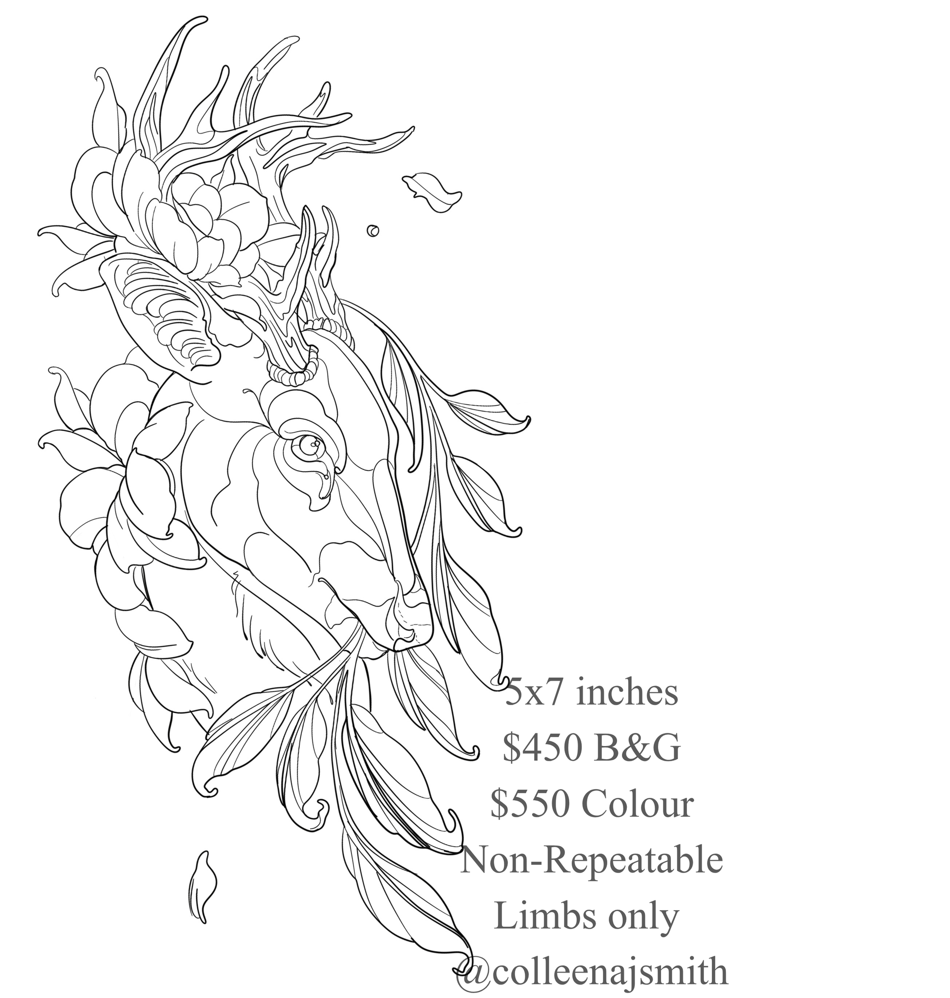 The price shown is for the deposit only, the full cost of this tattoo in Black & Grey is $450 and in Colour is $550, with the remainder due at the appointment. To book, simply add to cart, and head to checkout to pay your deposit or tattoo cost. You'll need to select In-store pickup, and then choose ASAP for a delivery option. Afterwards, you'll receive an email with a link to our booking calendar—pick a time that works for you and all the prep info will be emailed to you!
